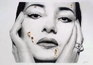 Mes dessins incarnent la sensibilité féminine où la fragilité se mêle à la force. A travers des portraits figuratifs je représente essentiellement des icônes féminines, des femmes admirées pour leur talent, leur beauté, leur charisme, ou encore leur influence.