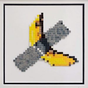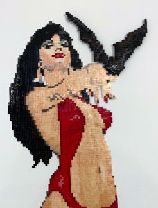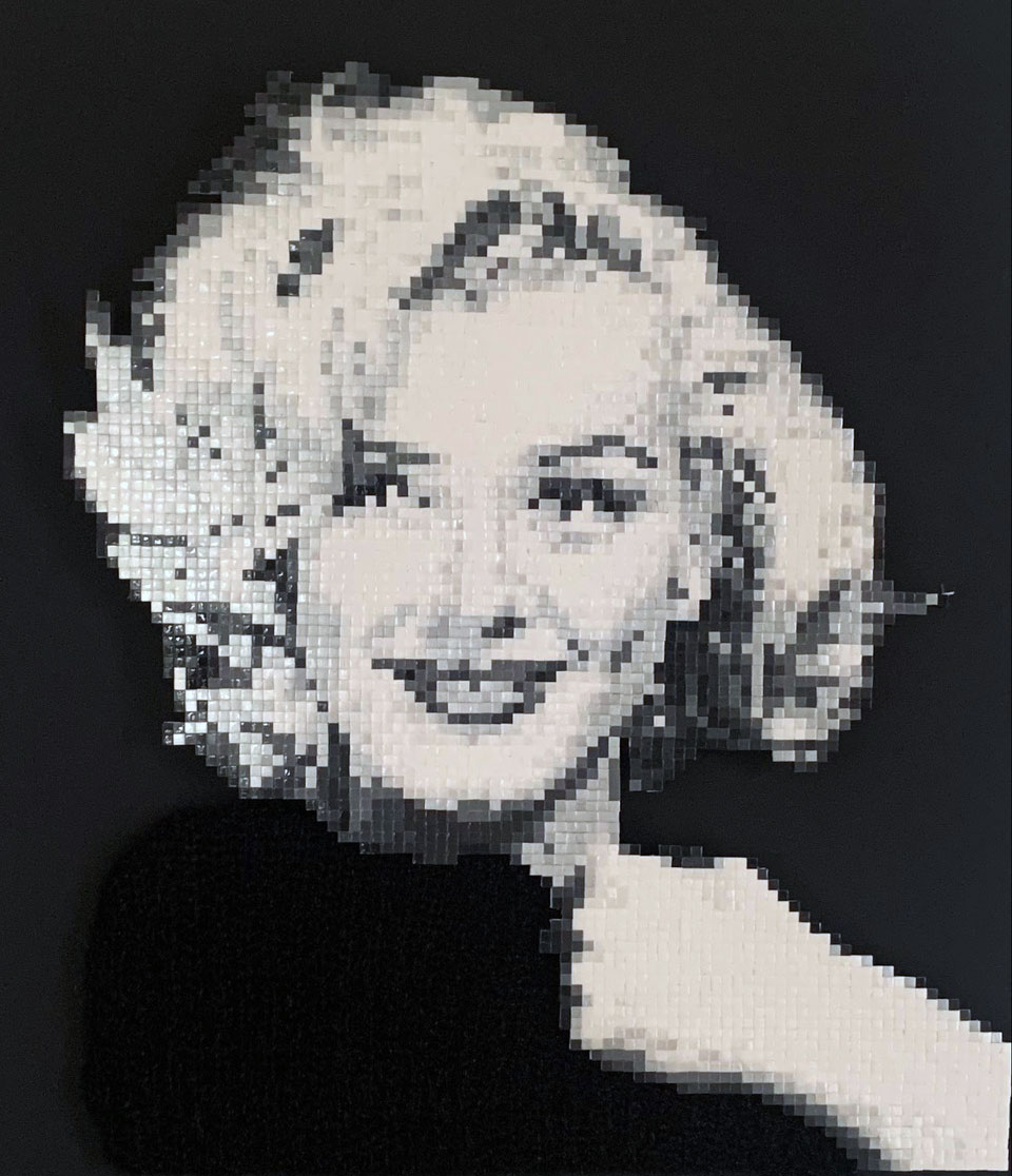 Inspirée directement de culture pop et d’icônes emblématiques, j’ai choisi de les revisiter à travers ce medium original, pixel art combiné à une technique unique utilisant le vernis à ongles.