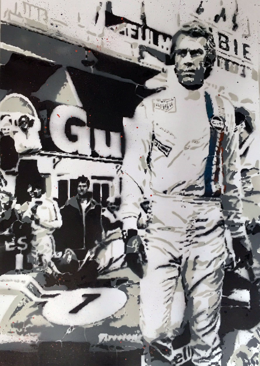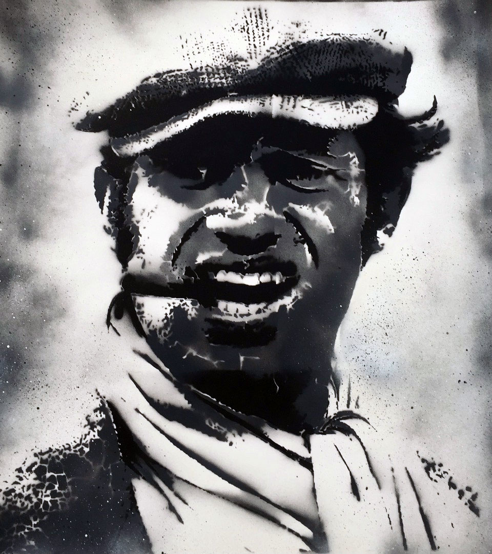 À travers le pochoir, je rends hommage aux icônes de cinéma et de la musique, capturant leur charisme unique dans un jeu subtil de contraste entre ombres et lumière. Chaque œuvre devient une relecture contemporaine de ces figures intemporelles, où la précision de la découpe des différents caches révèle les détails les plus marquants de leur personnalité et de leur aura.